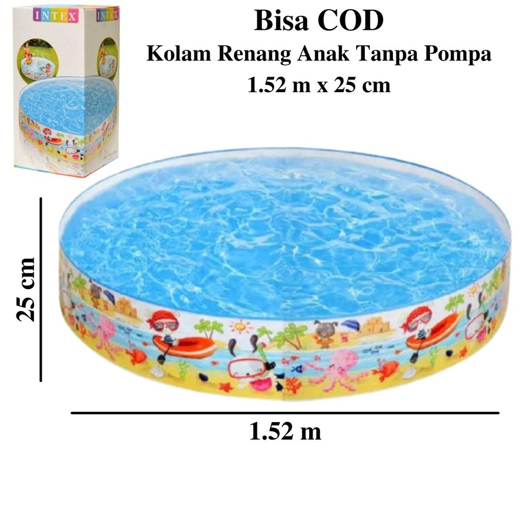 Kolam renang anak, mudah dipasang, anti bocor, ukuran 3,05 m x 0,76 m, dilengkapi pompa, ada. Kolam renang anak merk intex 57422. Selain bahan berkualitas, intex juga mengedepankan inovasi untuk semua usia. Dengan ukuran diameter 147cm dan ketinggian pembatas dipinggir 33cm. Kolam renang anak merk intex 57422.